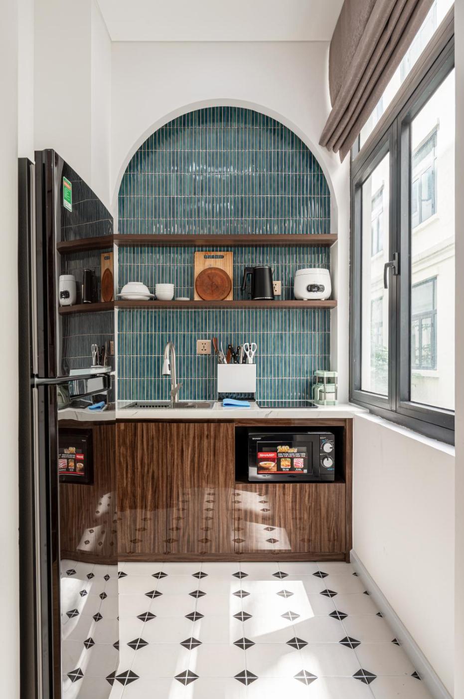 Family Studio. The fully equipped kitchen features a stovetop, a refrigerator, kitchenware and a microwave. This air-conditioned studio includes a flat-screen TV with streaming services, a private bathroom as well as a balcony with city views. The unit offers 1 bed and 1 futon.