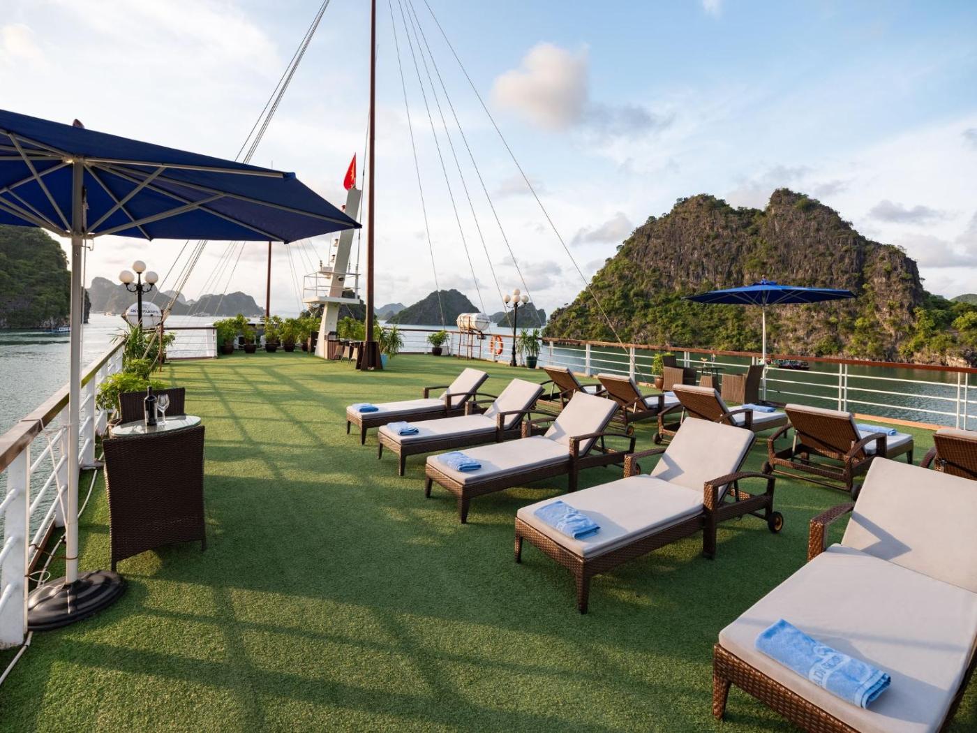 Boasting a garden, bar and views of pool, Le Journey Elegance Cruise 5 star Ha Long isin Ha Long, 1.5 km from Tuan Chau Beach. This beachfront property offers access to a terrace and free WiFi. The boat has family rooms.