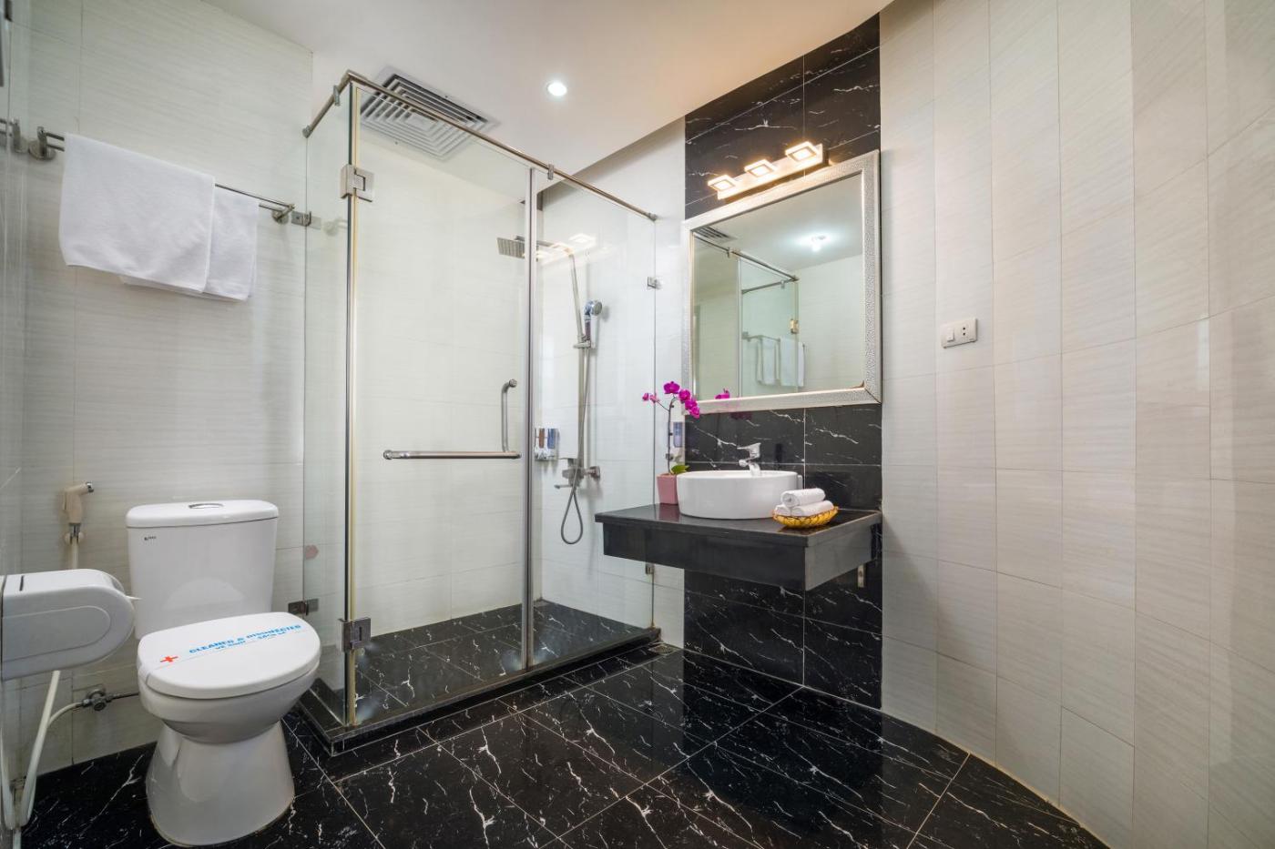 All rooms at Hanoi Lotus Boutique Hotel are fitted with timber flooring and finished with wooden furnishings. Air-conditioned, the rooms also come equipped with a 32-inch LCD TV, IDD telephones, DVD player and a minibar. The en suite bathroom comes with a hairdryer, whilerooms offer a balcony with city views.