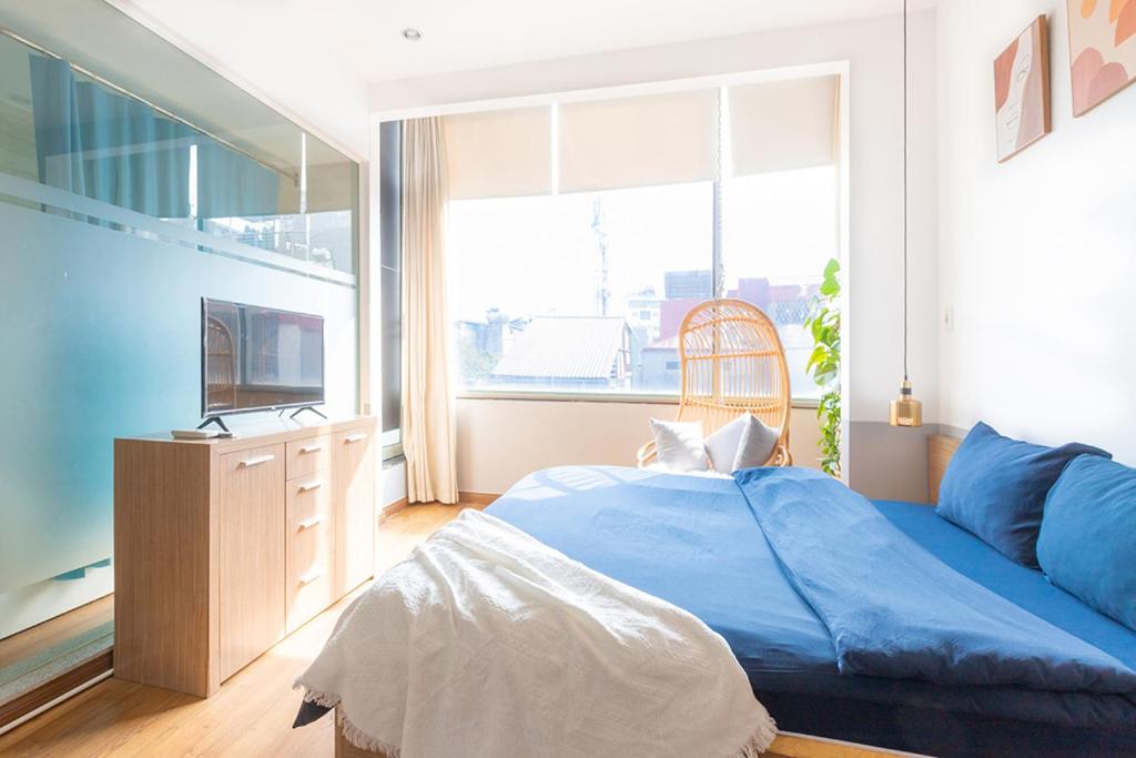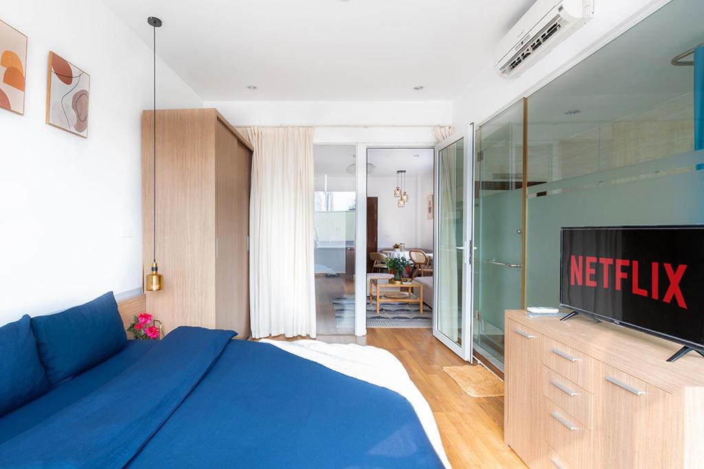 Deluxe Apartment. Featuring a private entrance, this air-conditioned apartment consists of 1 living room, 1 separate bedroom and 1 bathroom with a bath and a shower. Guests can make meals in the kitchen that is equipped with a stovetop, a refrigerator, kitchenware and a microwave. The apartment provides a flat-screen TV with streaming services, a seating area, a dining area, a wardrobe as well as city views. The unit offers 2 beds. ;