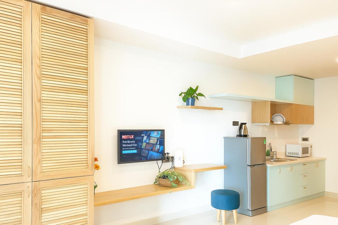 One-Bedroom Apartment. The air-conditioned apartment has 1 bedroom, 1 bathroom and a kitchen. The apartments kitchen is available for cooking and storing food. This apartment offers a washing machine and a flat-screen TV. The unit has 1 bed.