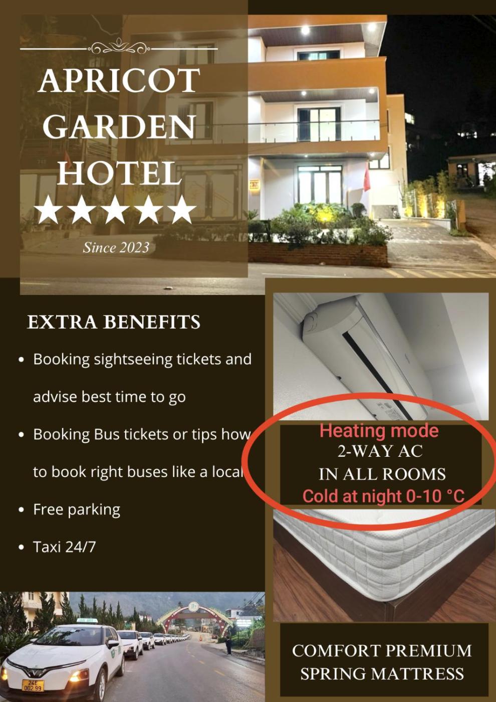Situated in Sa Pa, 4.3 km from Fansipan Legend Cable Car Station, Apricot Garden Hotel Sapa features accommodation with a garden, free private parking, a shared lounge and a terrace. This 3-star hotel offers room service and a concierge service. The accommodation provides a 24-hour front desk, airport transfers, a shared kitchen and free WiFi throughout the property.